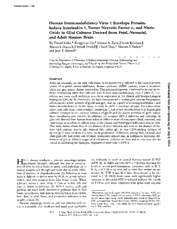 Pdf Human Immunodeficiency Virus 1 Envelope Proteins Induce Interleukin 1 Tumor Necrosis Factor Cx And Nitric Oxide In Glial Cultures Derived From Fetal Neonatal And Adult Human Brain Thanh Tran Academia Edu